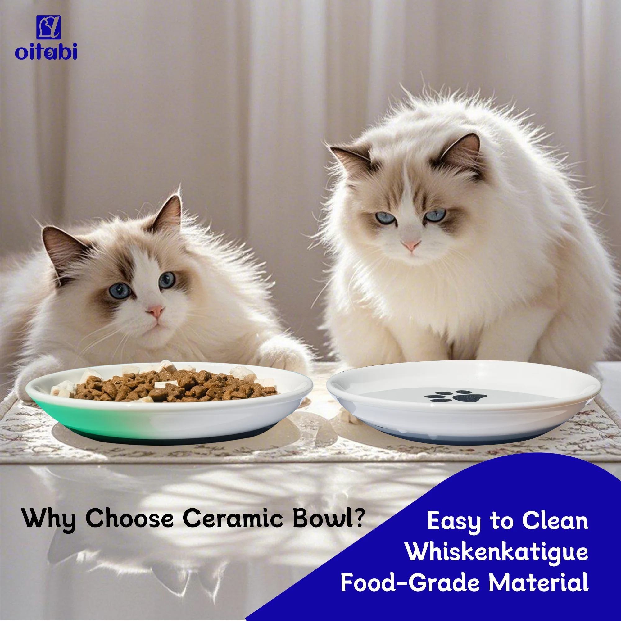 Oitabi 3PCS Cat Food Bowl, Ceramic Cat Bowls, Anti Whisker Fatigue Cats Bowl Set, Shallow Wide Kitten Plates for Food and Water